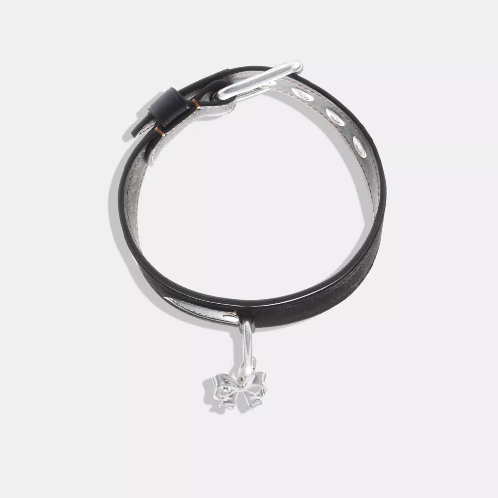 The perfect touch. Finished with a polished bow charm, this velvet choker channels ’90s nostalgia. The pin buckle closure is a nod to our heritage as a leather goods house.