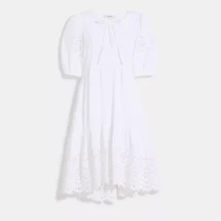 Coach Broderie Anglaise Puff Sleeve Dress In Organic Cotton