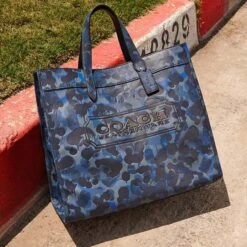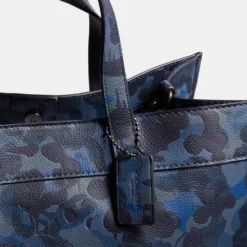 From busy weekdays to fun-filled weekends, our generously sized Field Tote 40 has space to hold everything you need and more—with room for a 15″ laptop and an inside zip pocket to hold small essentials. This versatile carryall is crafted of polished pebble leather featuring our graffiti-inspired Camo print and Coach graphic. Attach the sporty webbing strap to wear on the shoulder or crossbody.