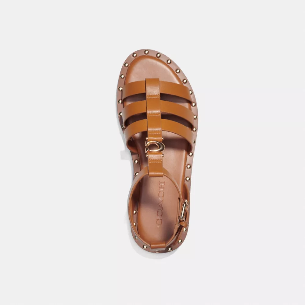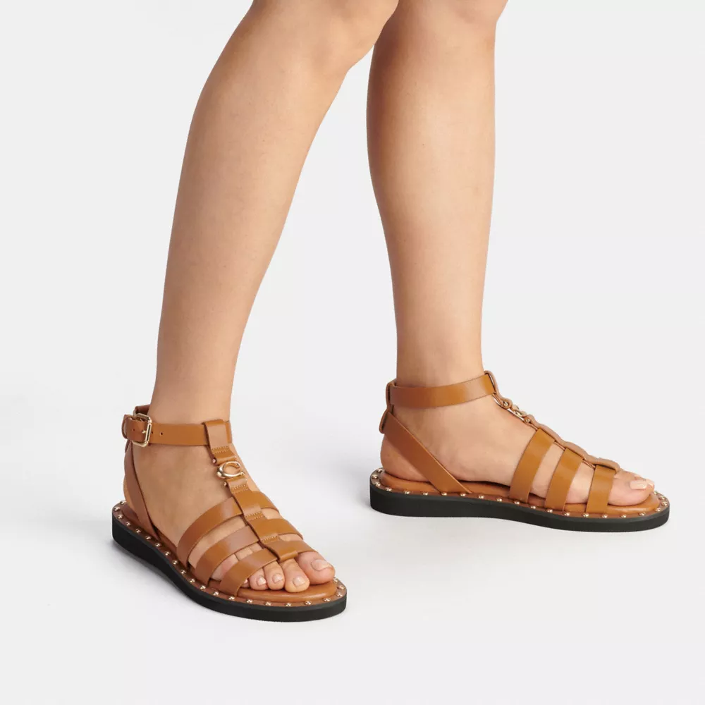 Giselle is a gladiator-inspired style crafted of smooth leather with a cushiony footbed for all-day comfort. The strappy design is detailed with polished studs and our Signature for iconic Coach style.
