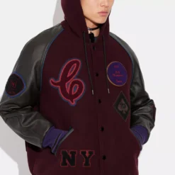 Coach Hooded Varsity Jacket In Recycled Wool And Recycled Polyester