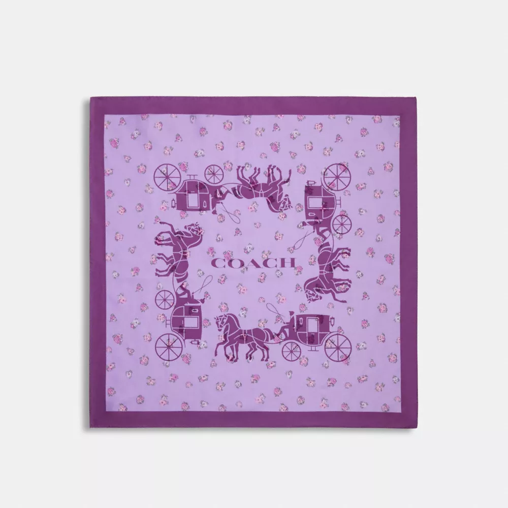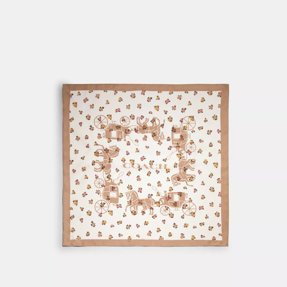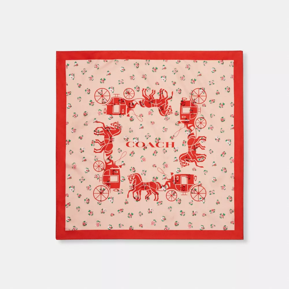 Coach Horse And Carriage Tea Rose Print Silk Bandana