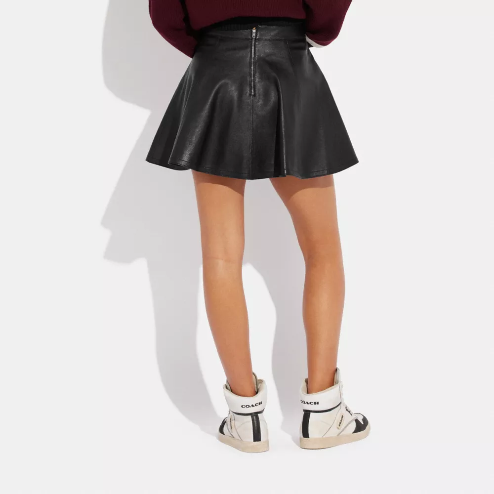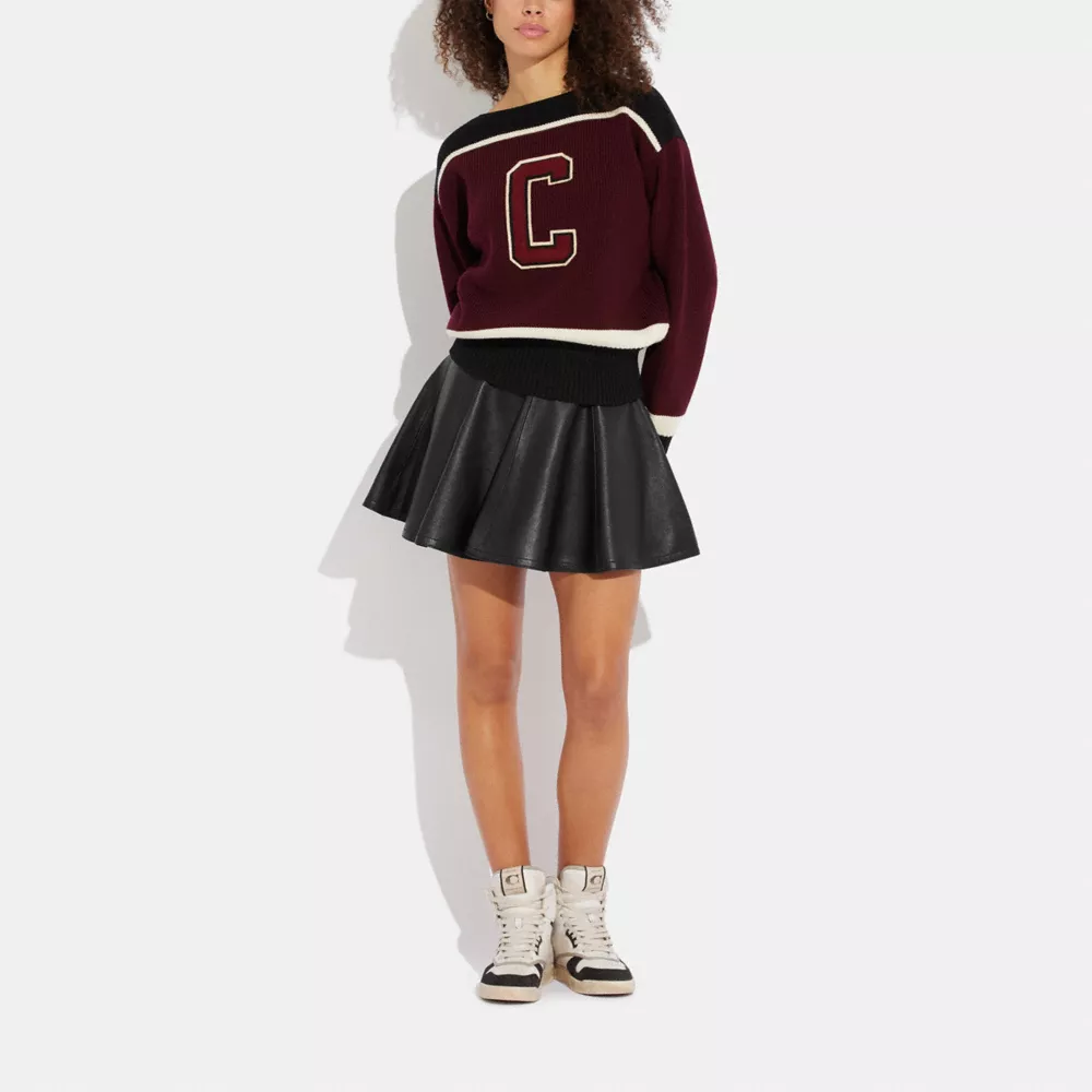 Give me a C. A luxe update of a vintage-inspired style, this cheerleader skirt is crafted of supple leather featuring an easy A-line silhouette. (We’ll always choose you for our squad.)