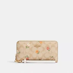 Coach Long Zip Around Wallet In Signature Canvas With Nostalgic Ditsy Print