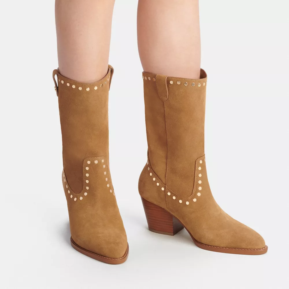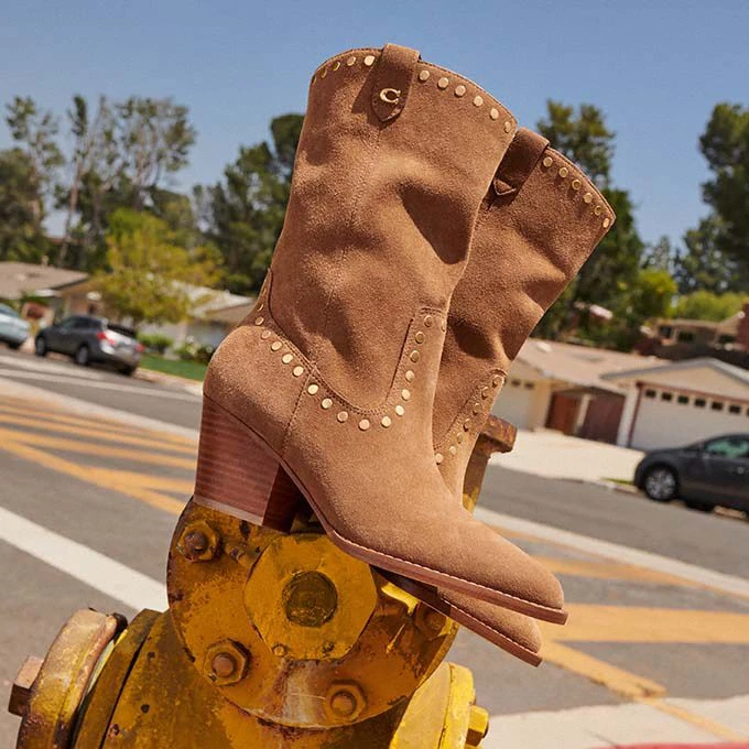 A Western-inspired style that’s ready for city streets, our pop-on-and-go Pheobe bootie features cushiony memory foam padding for all-day comfort and a rubber outsole for added traction. Detailed with polished studs and our Signature hardware, it’s crafted of velvety suede.