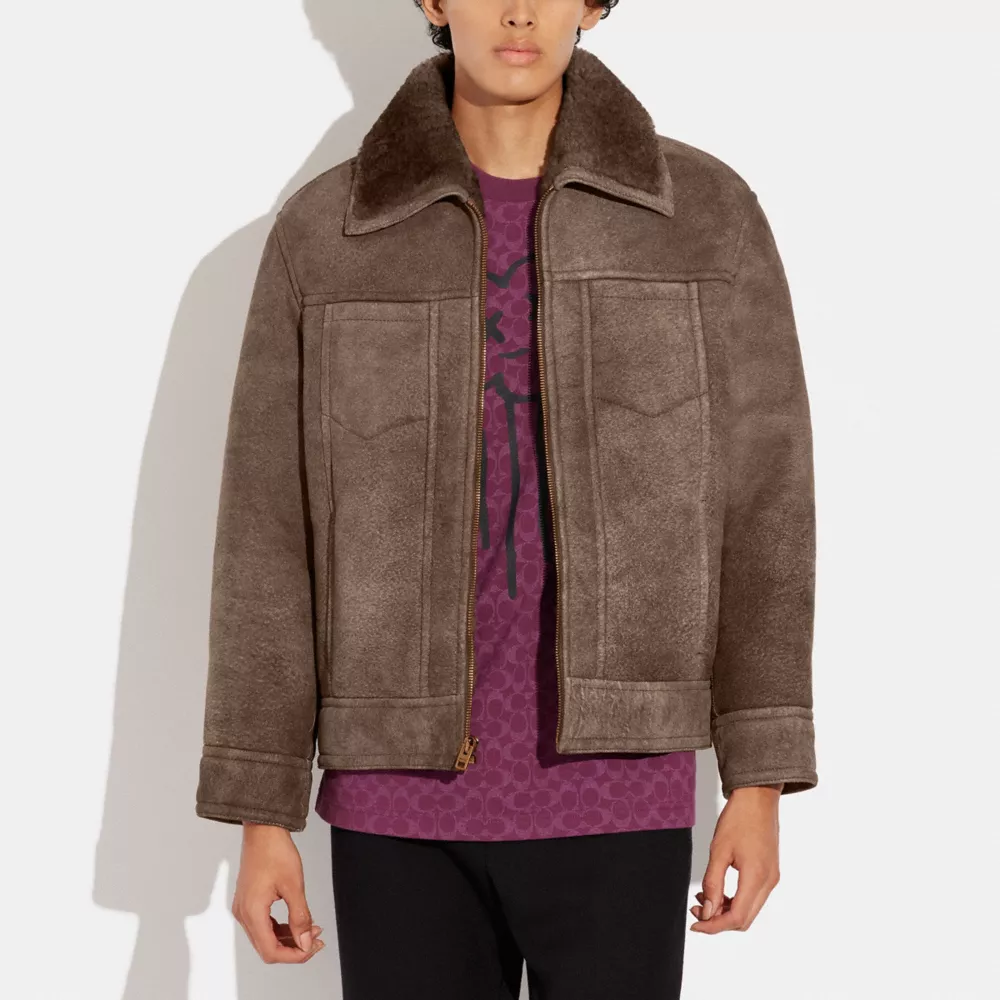 Combine a timeless silhouette with iconic Coach craftsmanship. Plush shearling elevates the trucker jacket in this classic-fit style finished with roomy slip pockets.