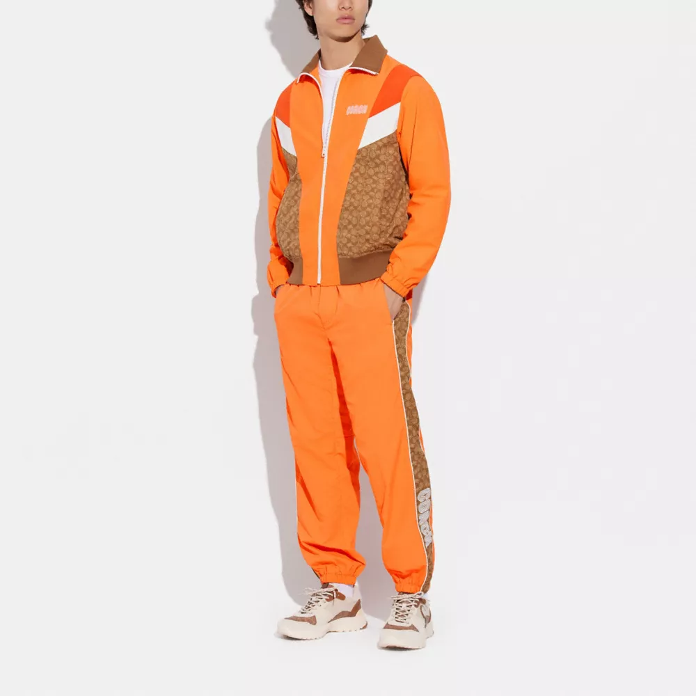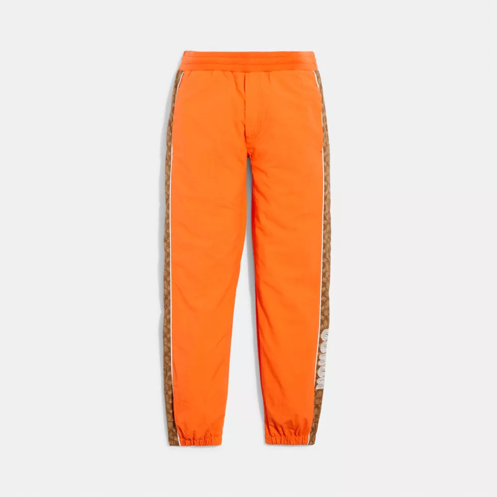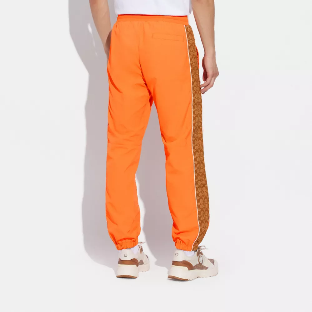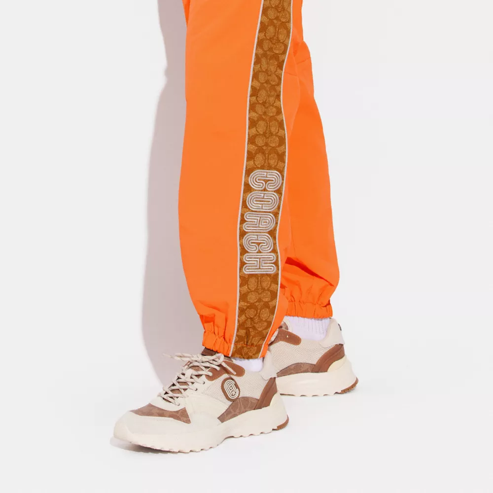 Upgrade your on-the-run style with these retro-inspired Signature track joggers. The lightweight sporty style features colorblock side paneling, a drawstring waist, slip pockets and our Coach retro graphic.