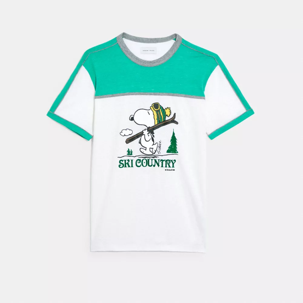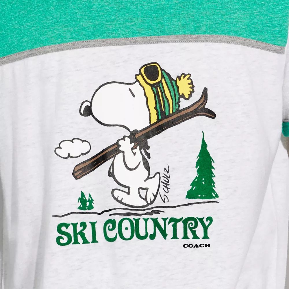 Snoopy hits the slopes in our special Coach x Peanuts collection. Crafted of a soft cotton-blend that’s been specially treated for a vintage look, this sporty classic-fit T-shirt is finished with retro-style colorblocking.