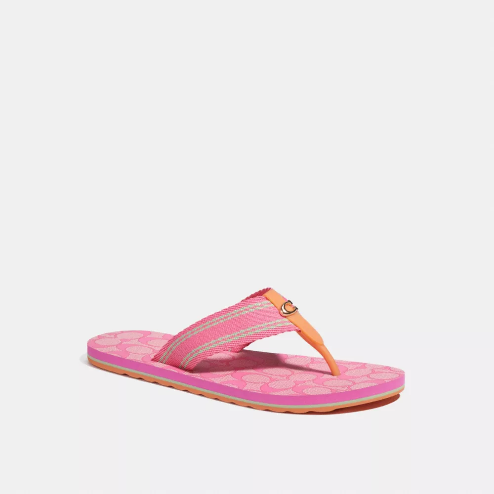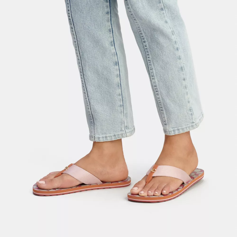A lightweight style, this webbing Zoe flip flop features our Signature hardware for an iconic touch. The rubber outsole provides excellent traction on city streets and poolside.