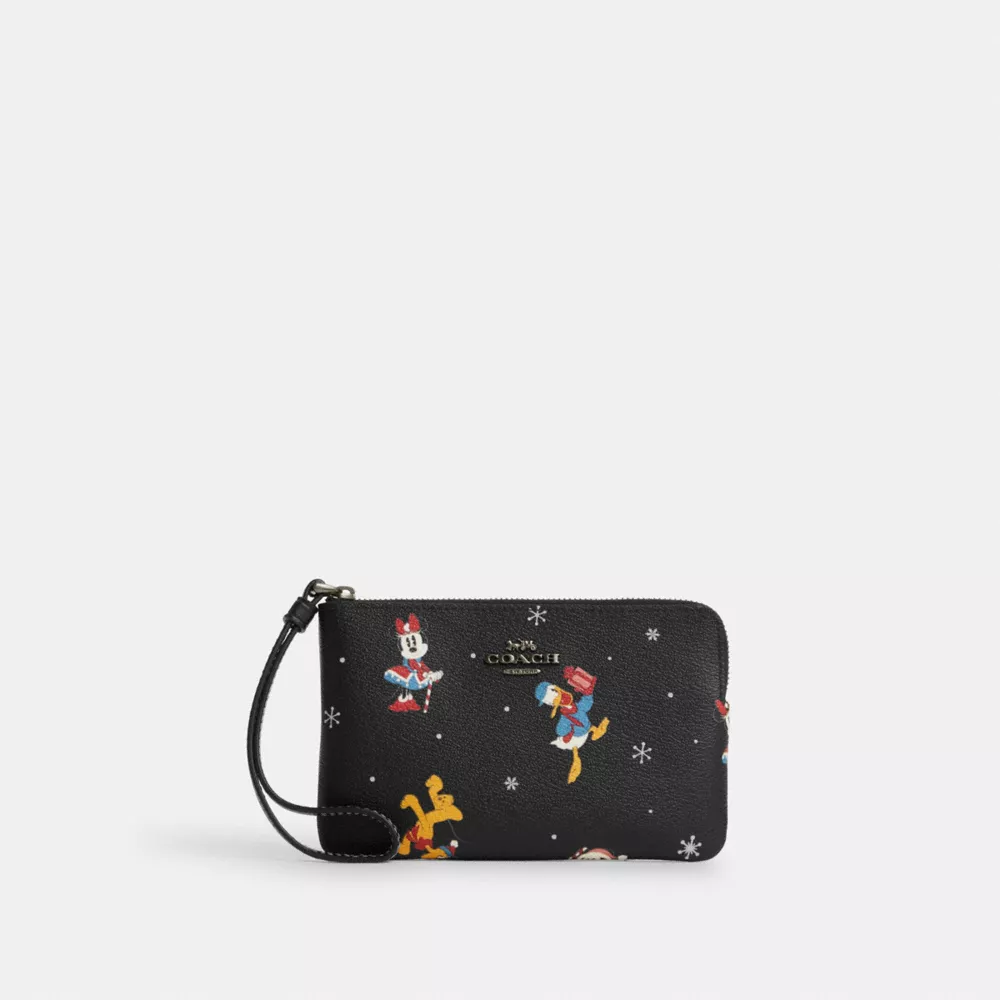Disney X Coach Corner Zip Wristlet With Holiday Print