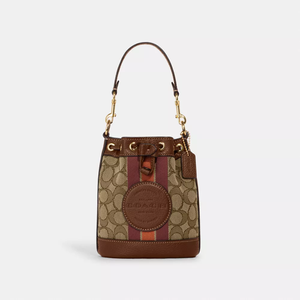 Mini Dempsey Bucket Bag In Signature Jacquard With Stripe And Coach Patch